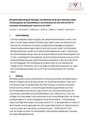 Der Deutsche Verband Tiernahrung e. V. (DVT) hat in einer umfassenden Studie die aktuellen Fütterungsverfahren in der Schweinemast und der Broilermast analysiert. Dazu wurden Erhebungen in Mitgliedsunternehmen von einer Arbeitsgruppe von Tierernährungsexperten durchgeführt. Die Ergebnisse zeigen deutlich, dass die Reduzierung der Stickstoffemissionen insgesamt und je erzeugtem Kilogramm Fleisch innerhalb der letzten 20 Jahre überzeugend gelungen ist. Der DVT ist optimistisch, dass die vom Gesetzgeber vorgegebenen Reduktionsziele für die Ammoniakausscheidungen realisierbar sind.